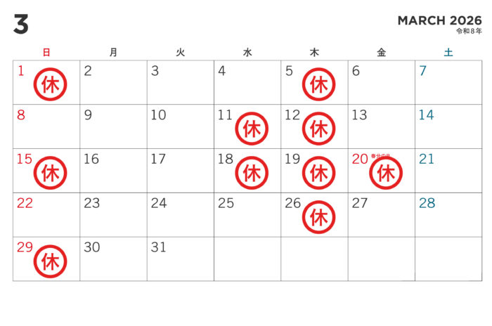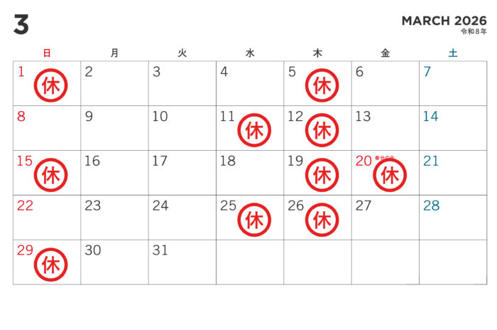 ※20日(金)は緊急時の対応のみとさせて頂きます。